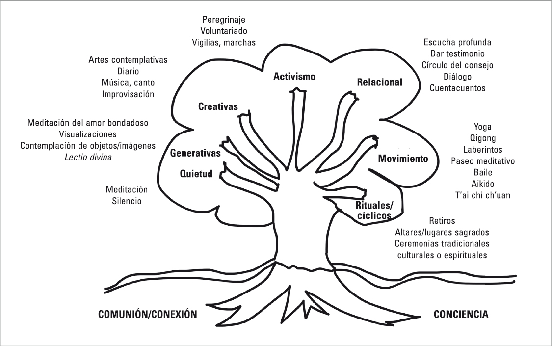 FIGURA 1. El árbol de las prácticas contemplativas (adaptada de Duerr y Bergman, The Center for Contemplative Mind in Society 5).